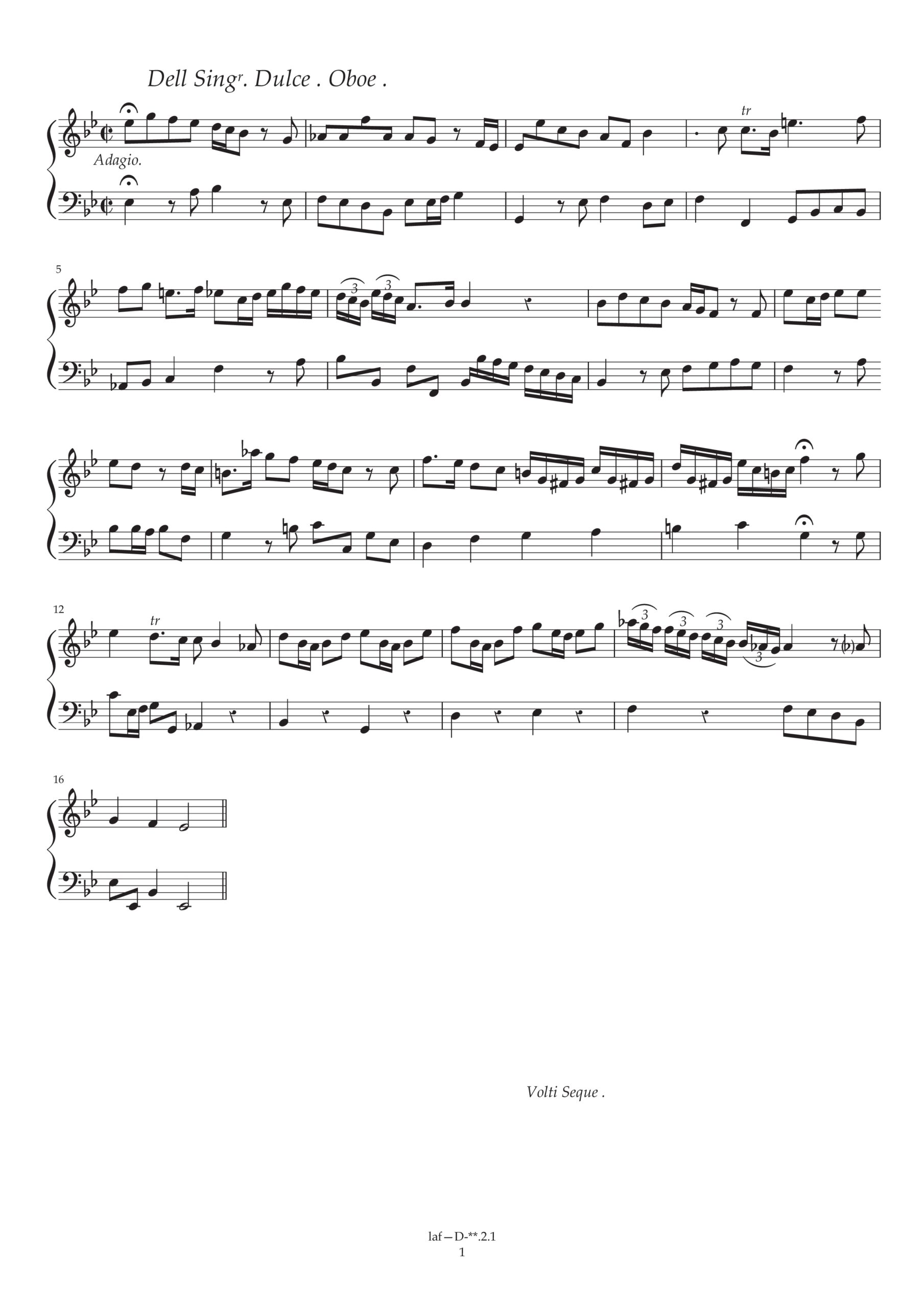 De Dulce, nous ne connaissons aujourd'hui que son nom, et cette petite sonate pour le hautbois, en quatre mouvements très accessibles – mais non sans caractère. Une pièce unique, en somme.