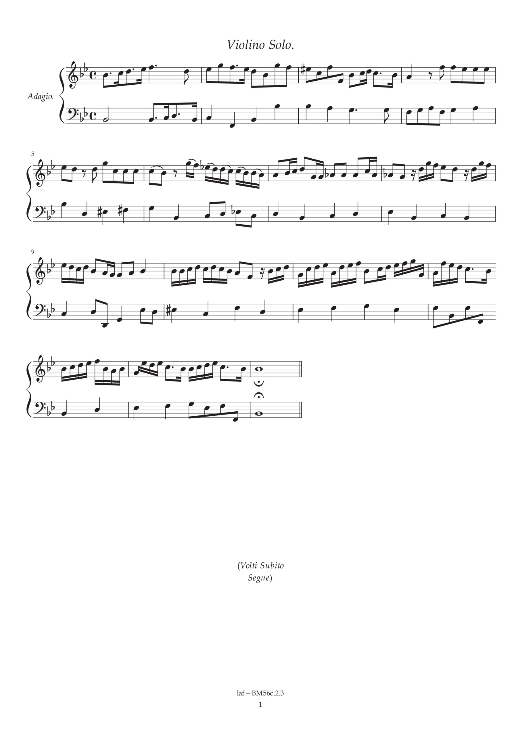 Bien que le titre de cette petite pièce la destine explicitement au violon, elle peut parfaitement être jouée avec un succès égal sur n'importe quel instrument de dessus, comme la flûte à bec – les trois premiers mouvements peuvent être joués sur la flûte alto, tandis que le dernier requiert une flûte soprano ou ténor –, le traverso, ou le hautbois, en raison de son ambitus et de sa tonalité.