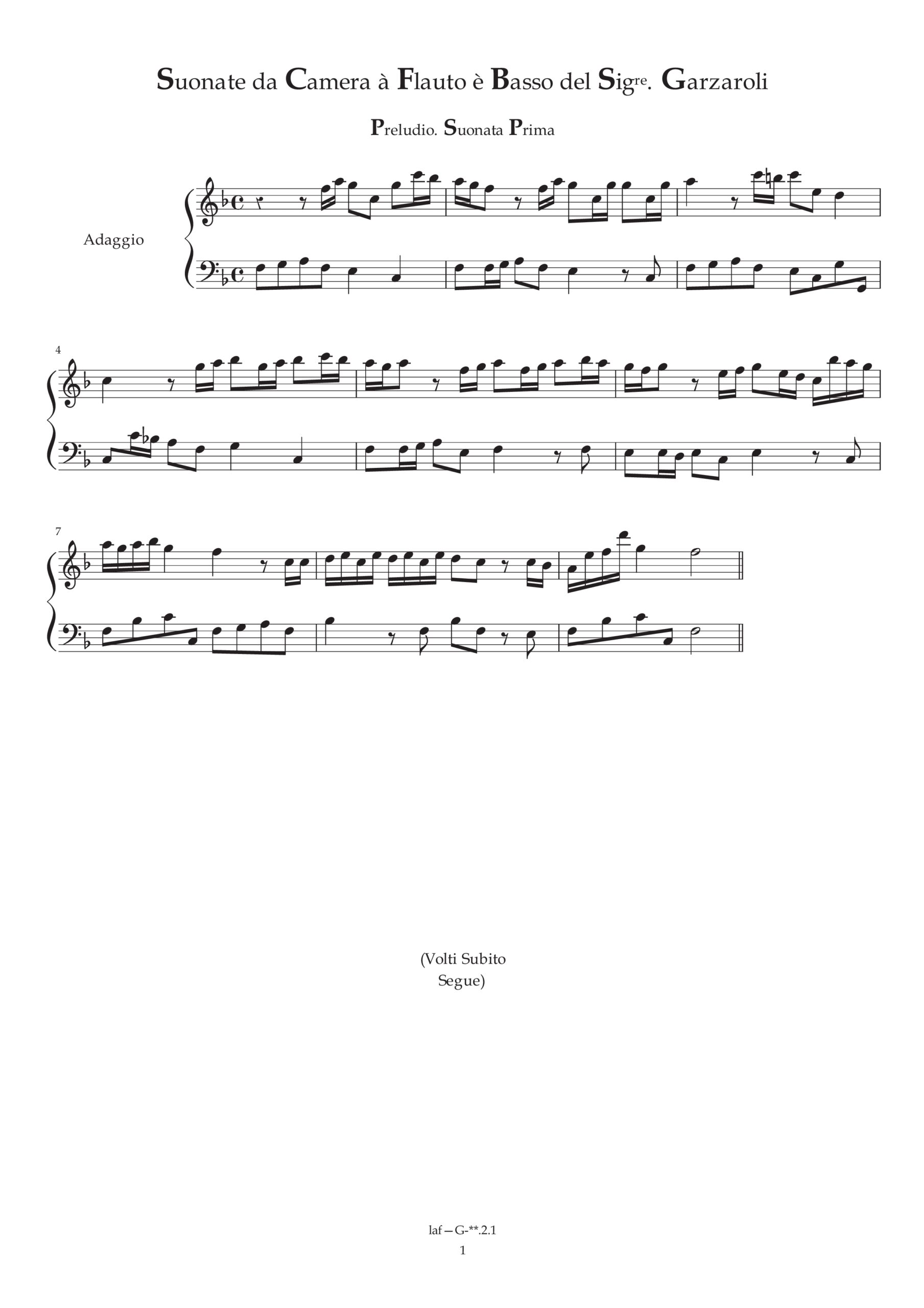 Ce recueil de sonates pour flûte à bec alto et basse continue est l'unique témoignage d'un compositeur dont seul le nom nous est parvenu : le prénom de Garzaroli, tout comme ses dates de naissance et de décès, échappent à l'état actuel de nos connaissances.
