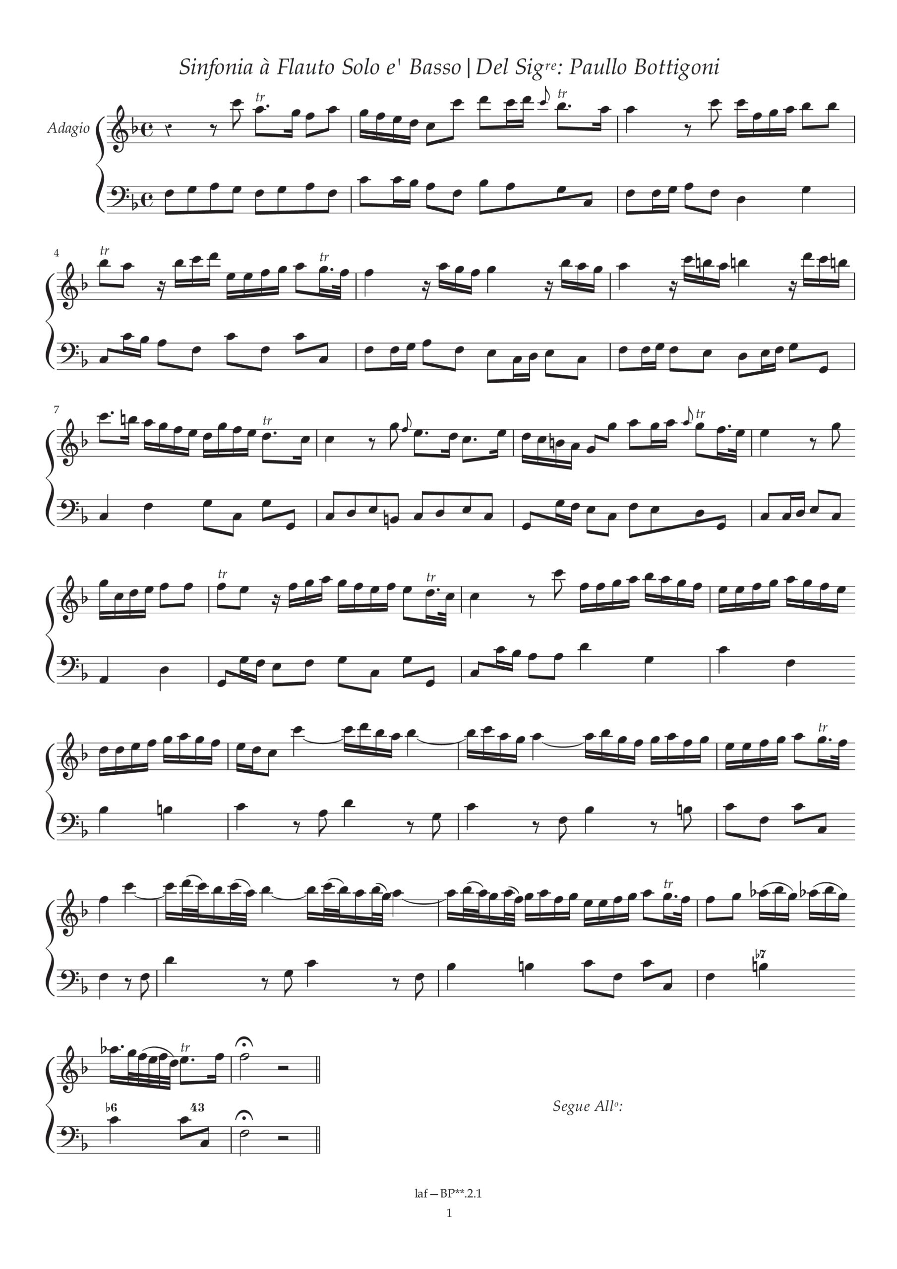 Voilà un autre de ces compositeurs dont on n'a trace de l'existence qu'à travers une unique pièce, conservée grâce à la main de quelque copiste, qui l'a heureusement consignée au sein d'un vaste manuscrit. Sans être une pierre angulaire dans l'art de la flûte à bec, cette sinfonia (comprendre "sonate"), aux modestes dimensions, se prête toutefois assez bien au lyrique dans ses deux mouvements lents, comme à l'agilité dans ses deux mouvements vifs.