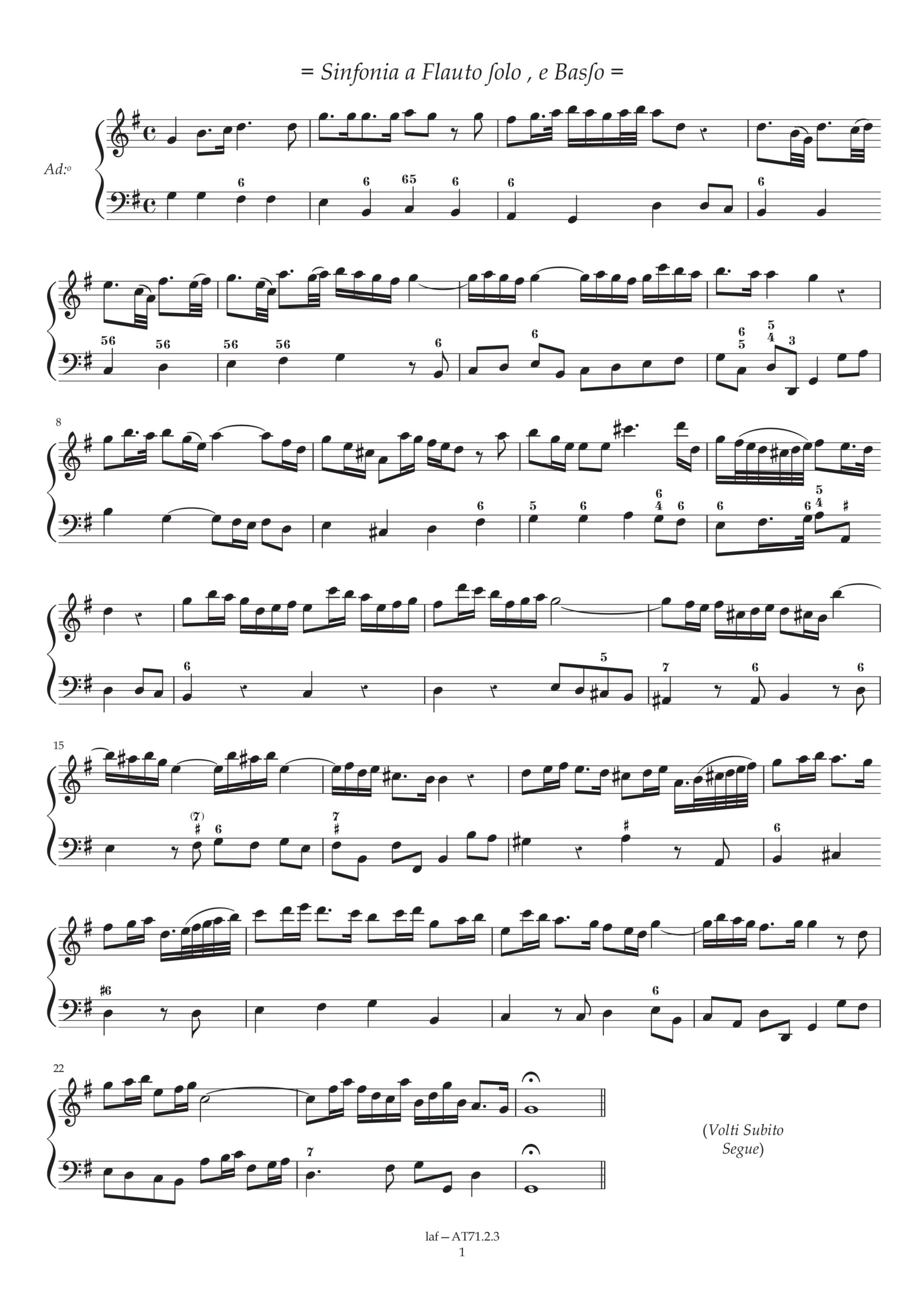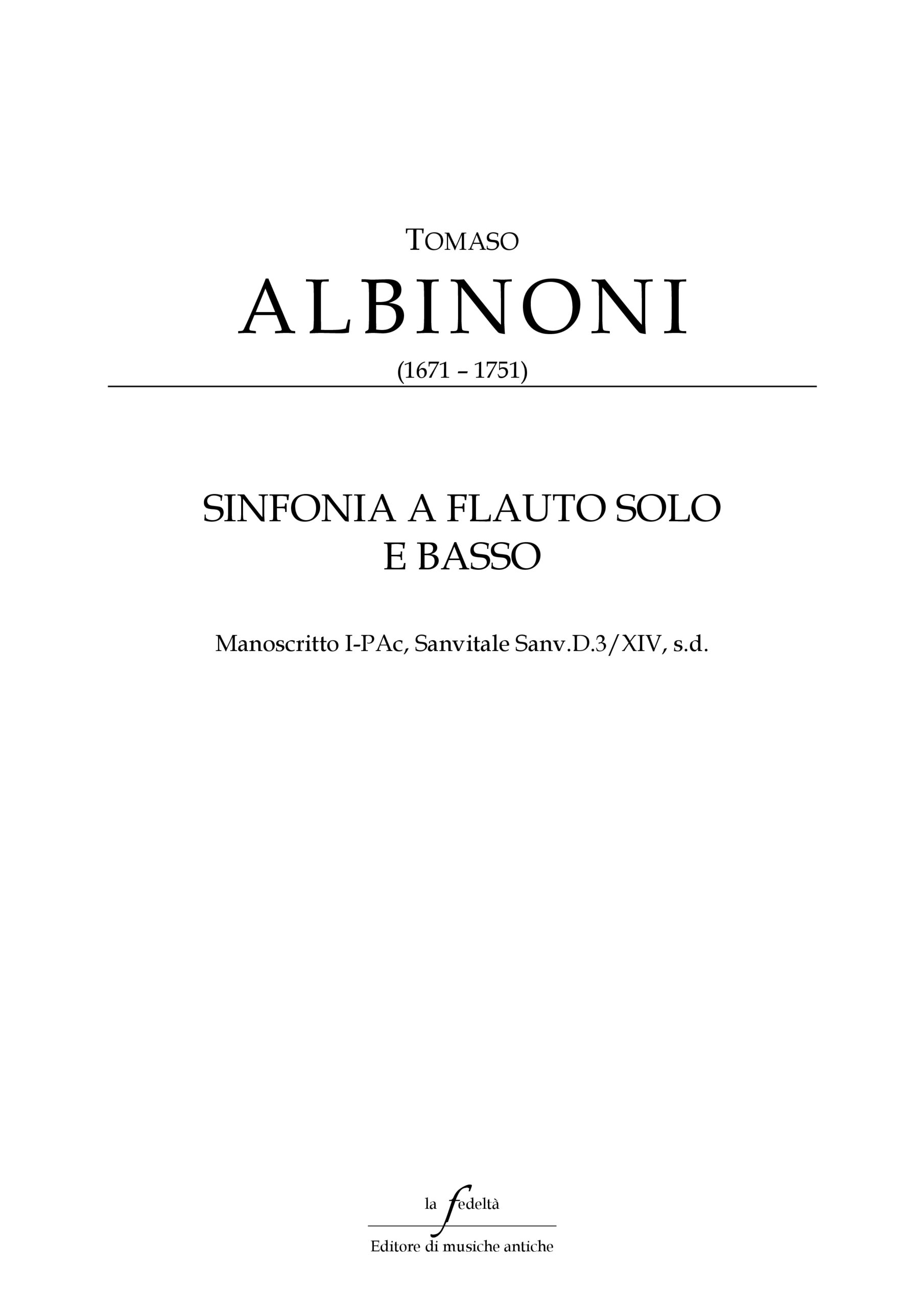 Cette sinfonia – comprendre « sonate » –, de la même façon que la sonate pour flûte à bec alto & bc opus VI n°6 du même Albinoni, est une transcription pour la flûte à bec alto de la sonate opus VI n°9 (Trattenimenti armonici per camera), initialement pour le violon. A vrai dire, en fait de transcription, il s'agit du texte original de la pièce, simplement adapté à la flûte à bec alto : la tonalité a été préservée, tout comme l'ambitus ; la seule modification qui a été apportée consiste en la suppression des doubles et triples notes présentes çà et là dans la pièce originale. Tout comme sa sonate sœur, elle peut également être jouée au traverso.