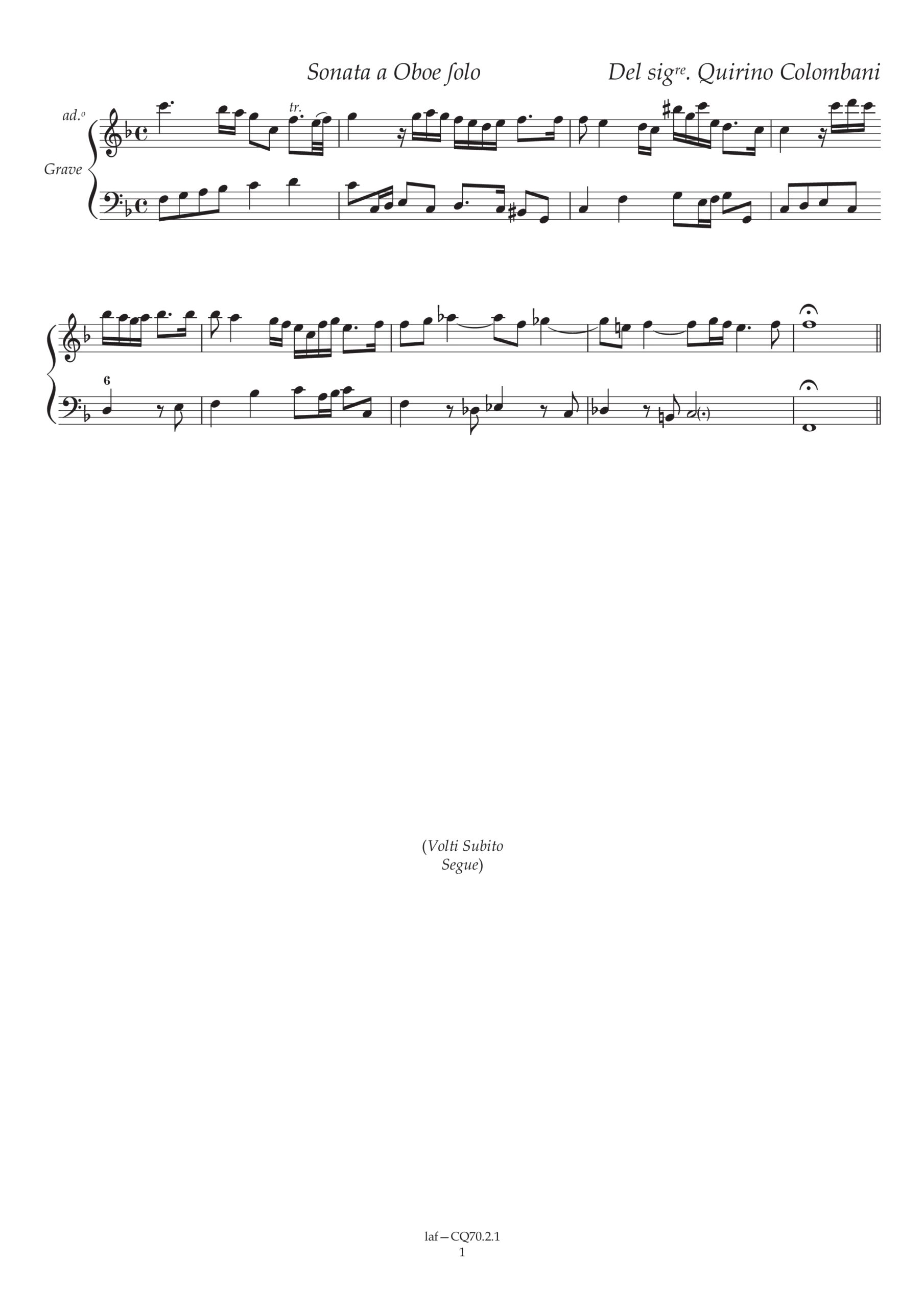 Bien que le titre de cette pièce fasse clairement mention du hautbois comme instrument soliste, il est en fait bien plus vraisemblable qu'il s'agisse plutôt ici d'une transcription pour flute à bec d'une sonate originellement écrite pour le hautbois – mais aujourd'hui perdue. La tessiture trop élevée pour le hautbois, l'ambitus parfaitement adapté à la flûte à bec alto, ainsi que la tonalité, font immanquablement penser à une sonate pour flûte à bec alto ; il est toutefois envisageable de la jouer également au traverso, ou encore à la flûte à bec ténor (ou soprano).